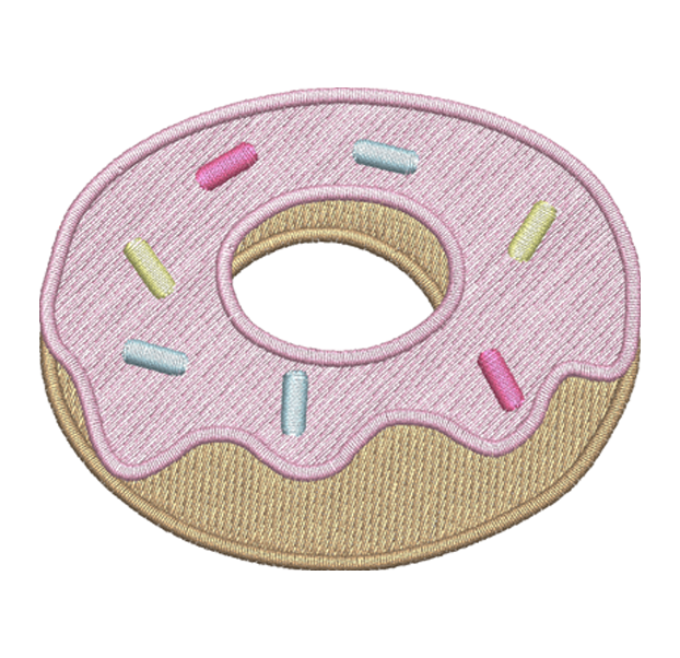 Love donuts? Show your love for this delicious treat by sewing out this cute design that can be used on a jacket, cap, sweatshirt or any other garment.